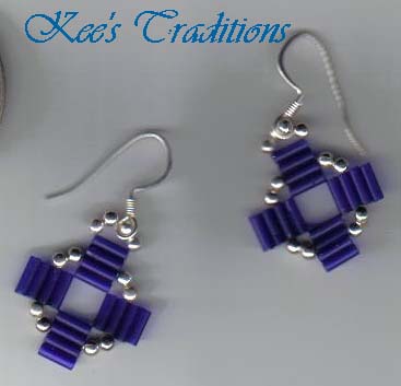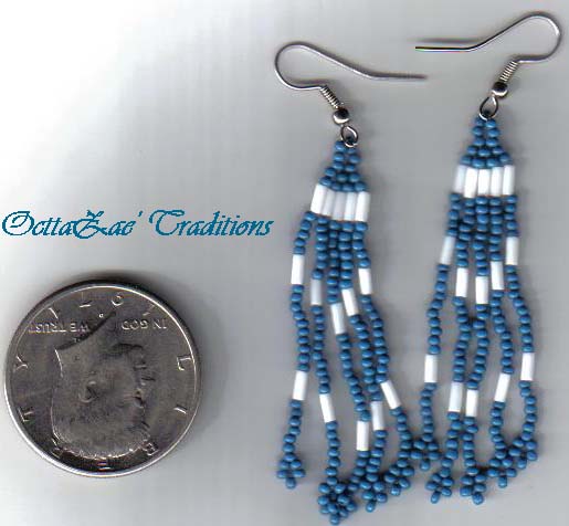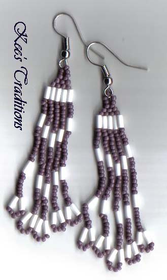 All the beads used are size 11 glass seed beads. Available Colors: Denim Blue and White Lilac Purple and White Can make a custom pair in a variety of different colors. Just ask, and I'll let you know what I have & can do. |