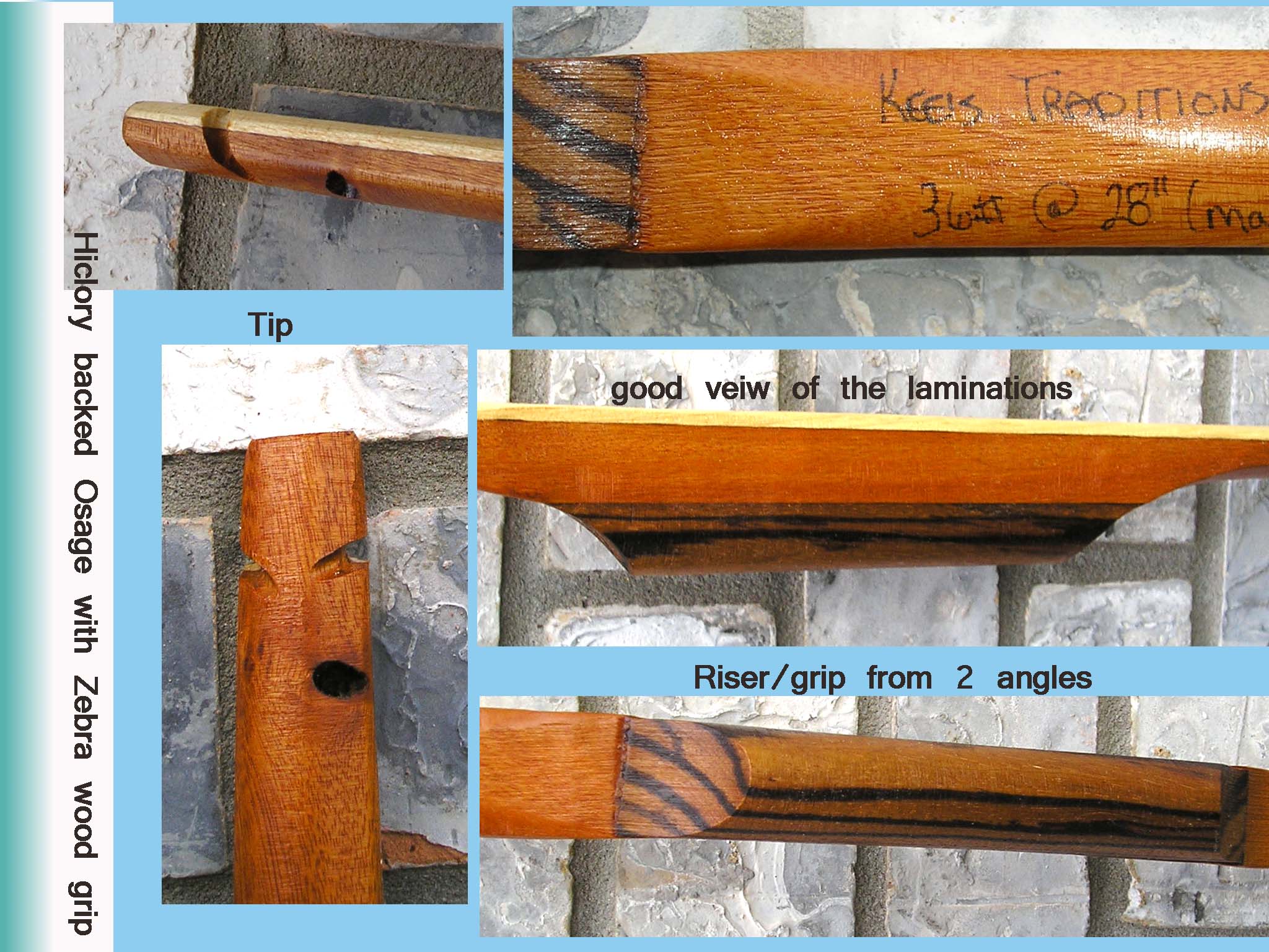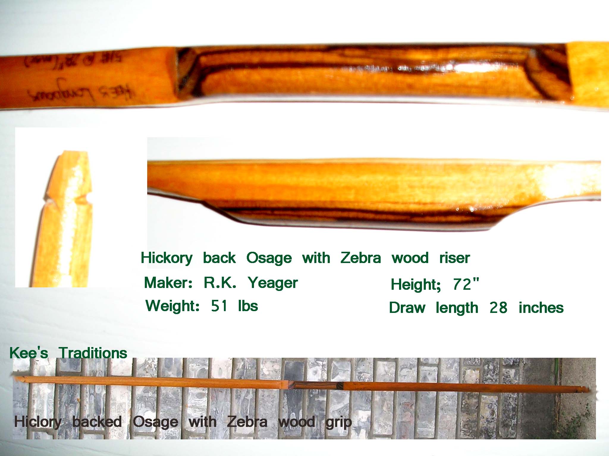 Hickory is usually a very strong white wood. These bows usually have great arrow speed, but are generally very stiff and or stack as you draw. They make wonderful hunting bows.