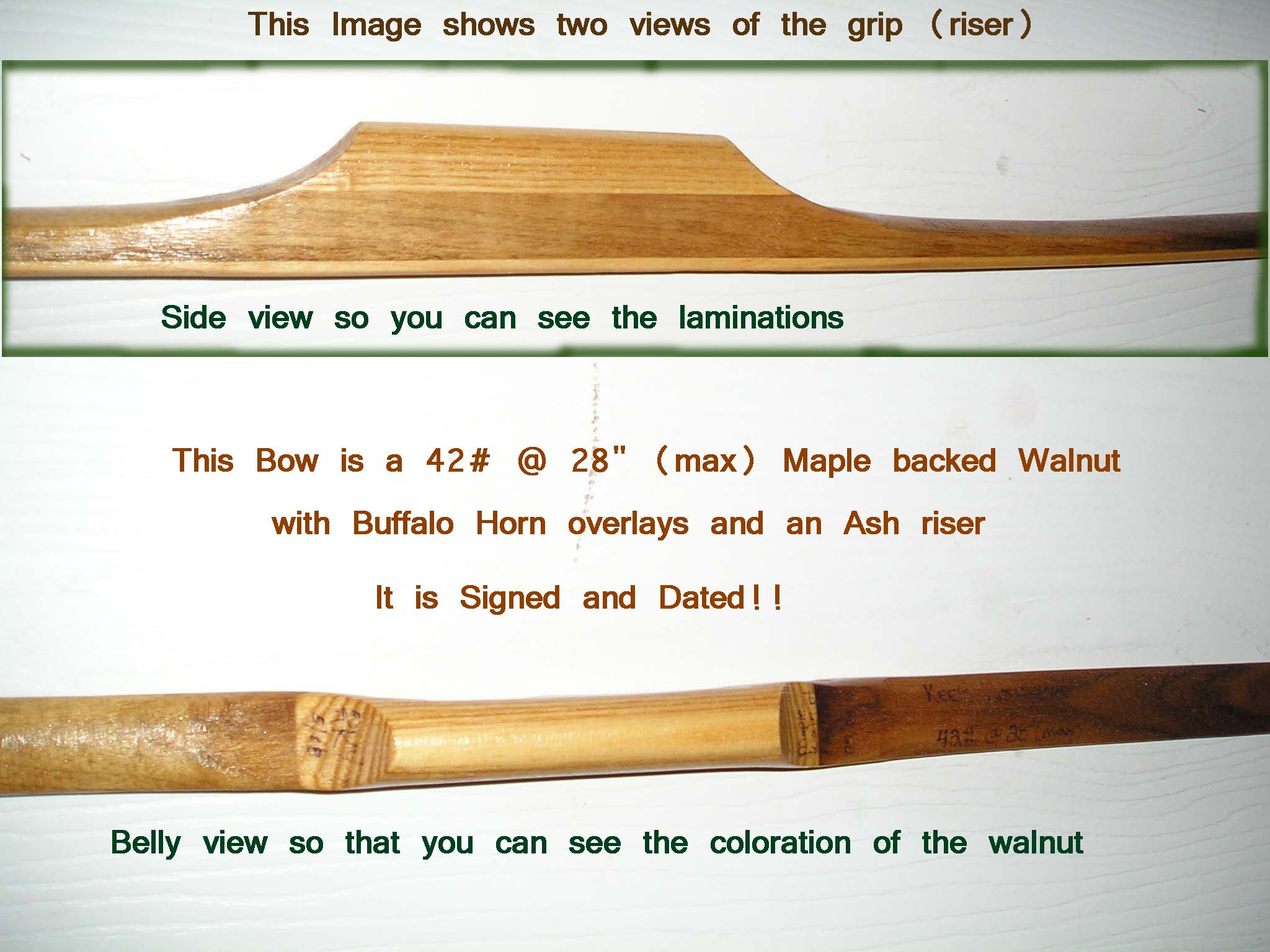 | $125.00 + S/H | Hickory or Maple Backed Osage |