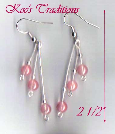 These pair of earrings are made with 5 or 6mm Cherry Quartz Stone beads which vary in color from Medium to Dark pink, some even have streaks or Red and 4 mm Silver round beads. They are on surgical steel French hooks, but I can also do these on sterling hooks or Surgical steel posts.