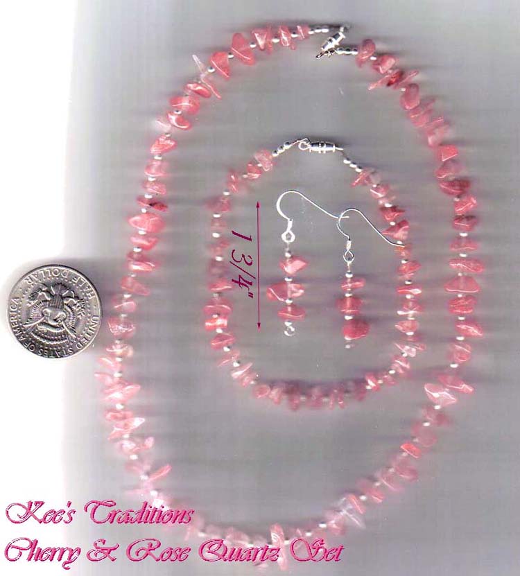 | $5.75 + $1.15 s/h | Single Drop Earring and bracelet in cherry quartz - ONE OF A KIND | ||||