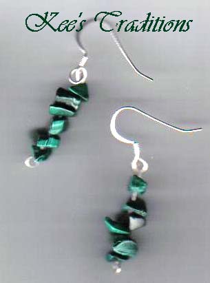 These pair of earrings are made with Malachite Stone Chip beads which are dark green in color.. They are on surgical steel French hooks, but I can also do these on sterling hooks or Surgical steel posts.