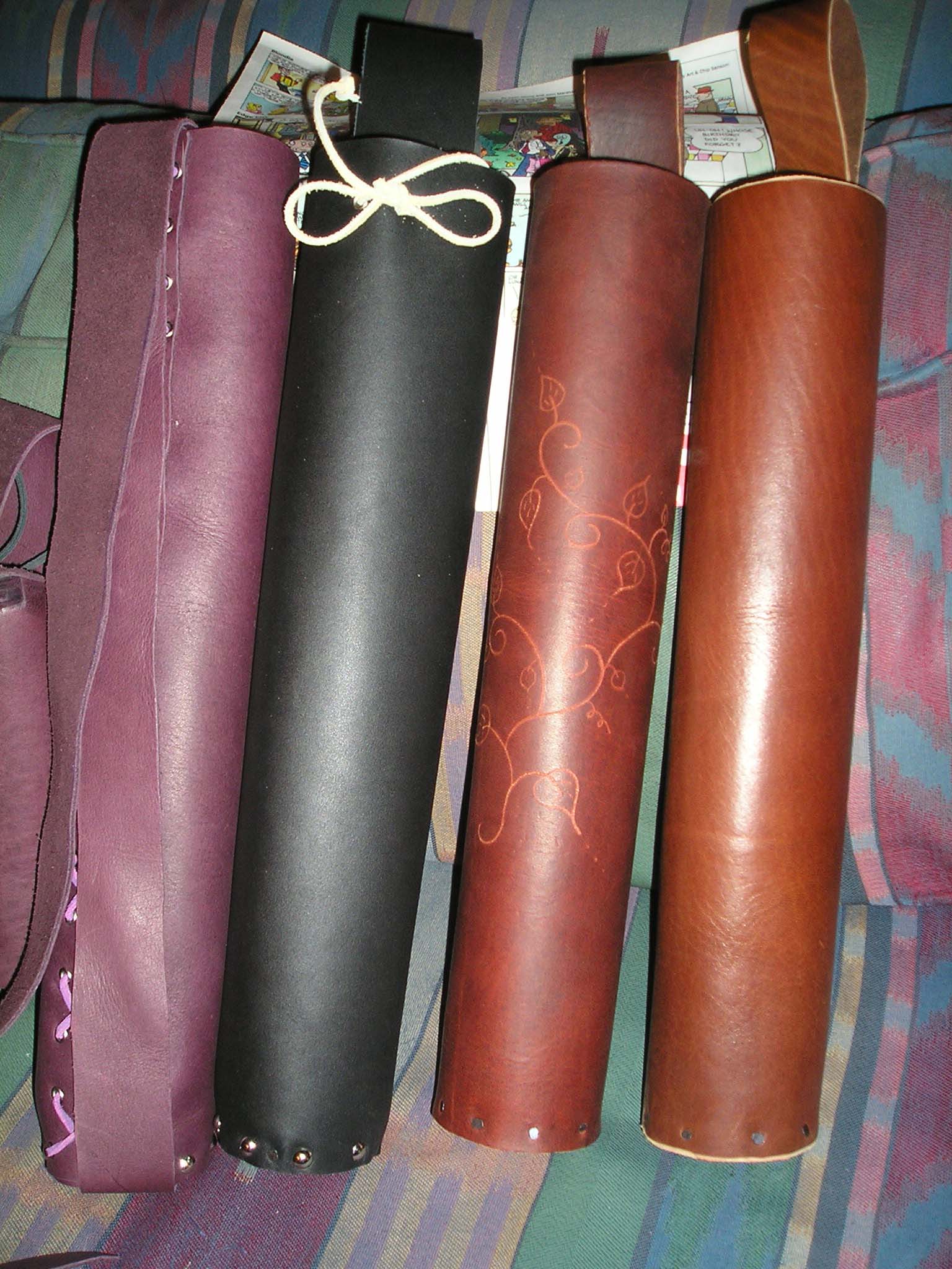specified! There will be leather back quivers in two sizes, belt quivers in