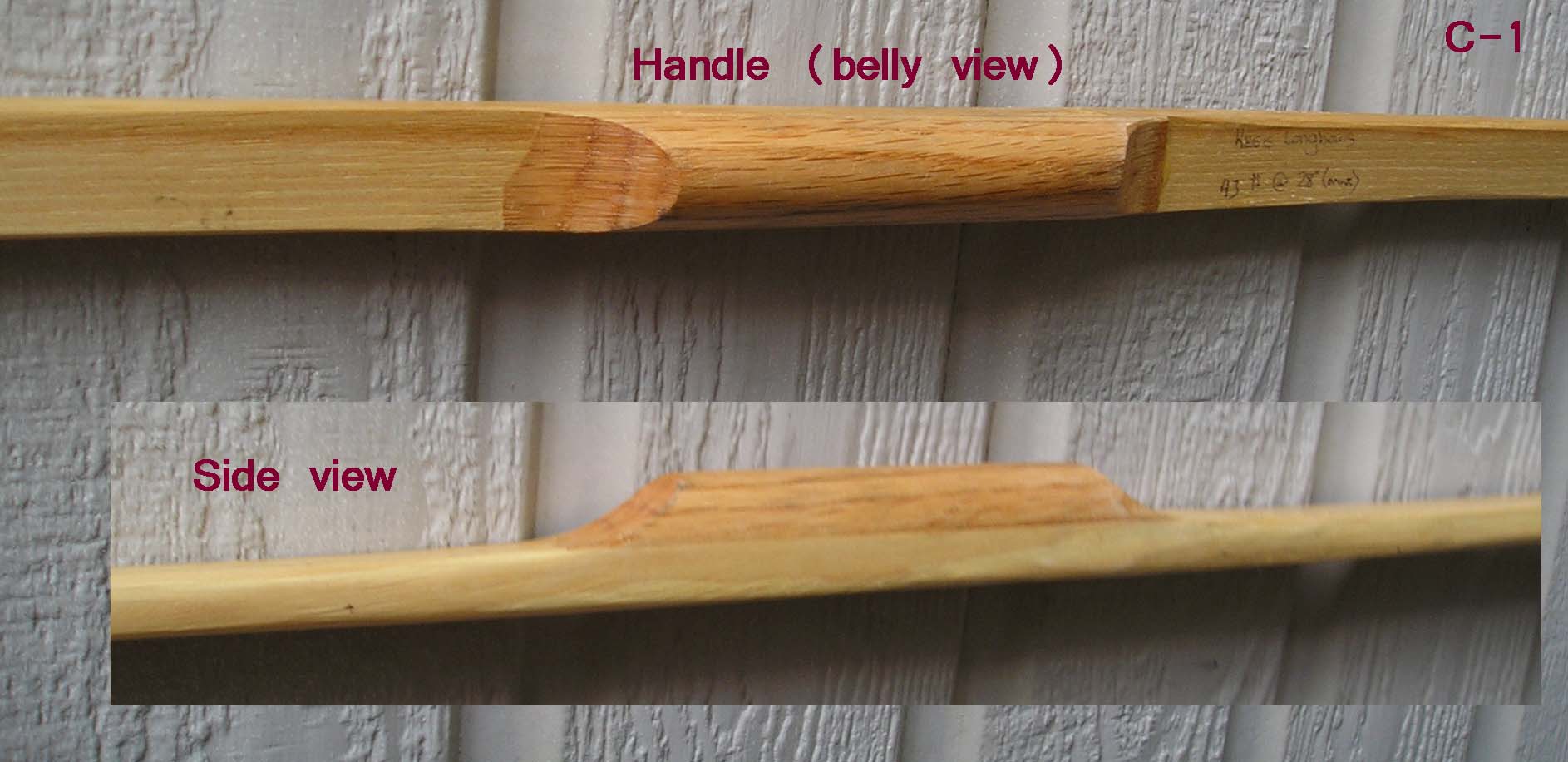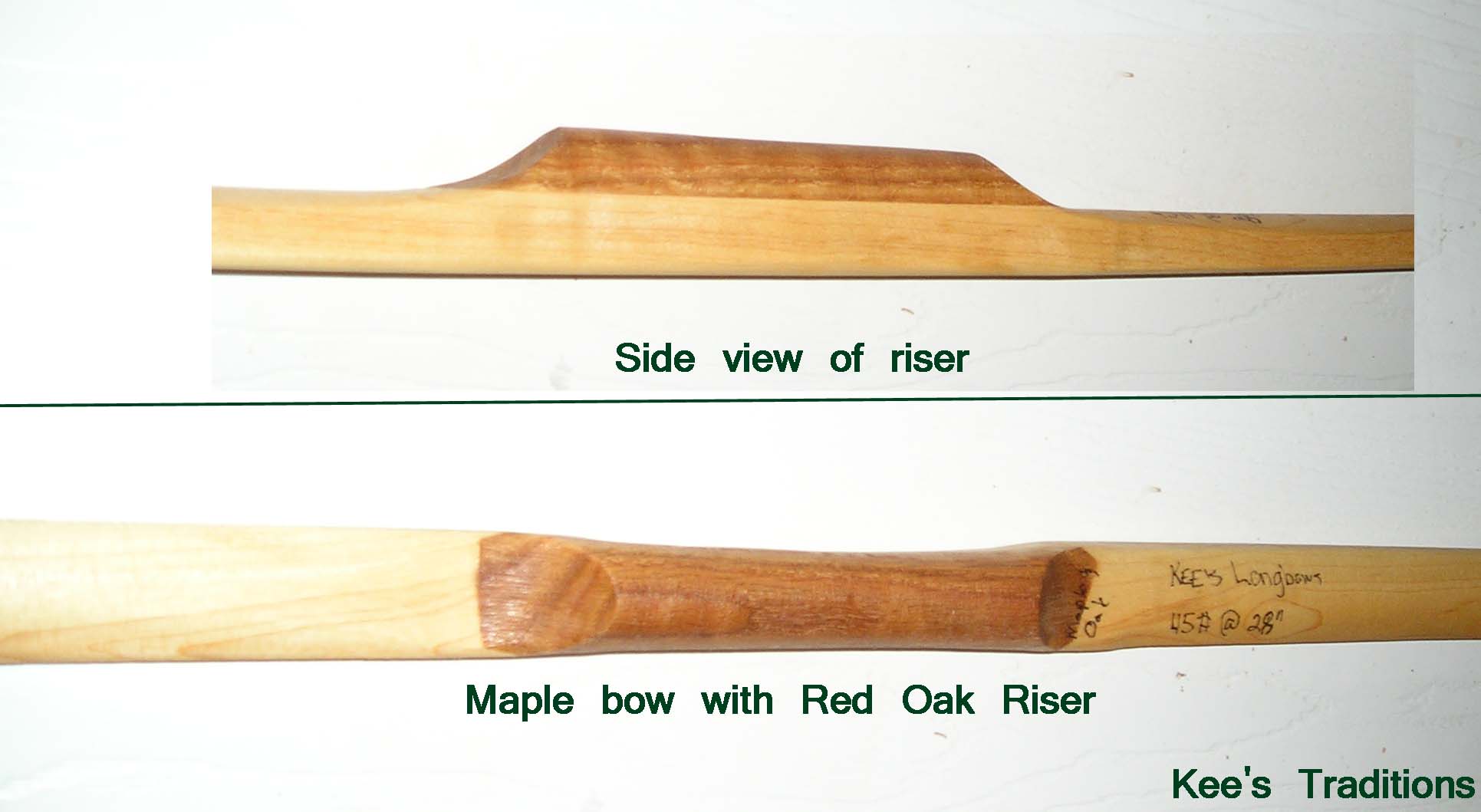 Made from a red oak, with a built up riser. This is a great starter bow whether your just getting into archery or