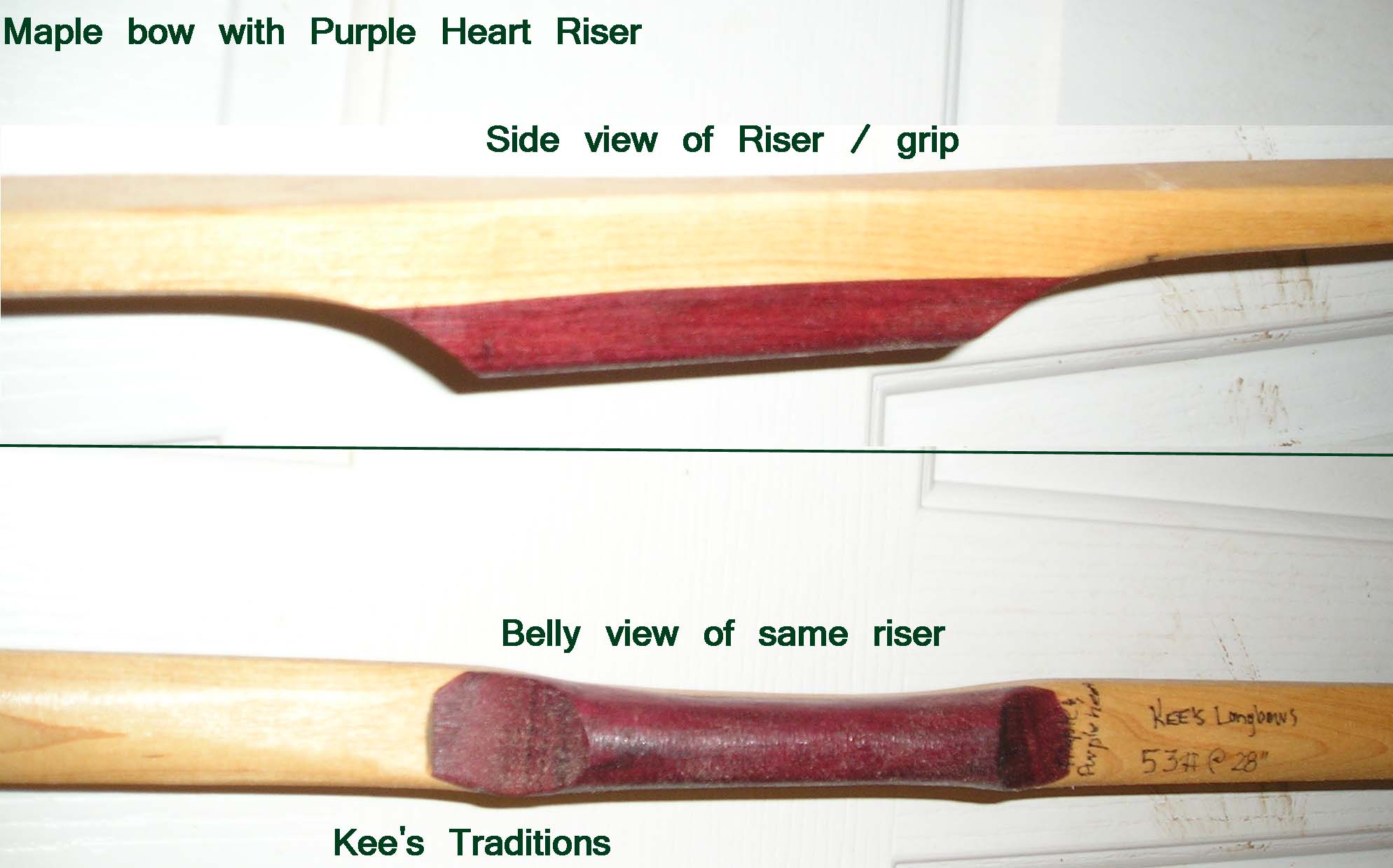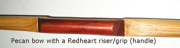 Made from Hickory/Pecan. This bow has a built up riser (grip or